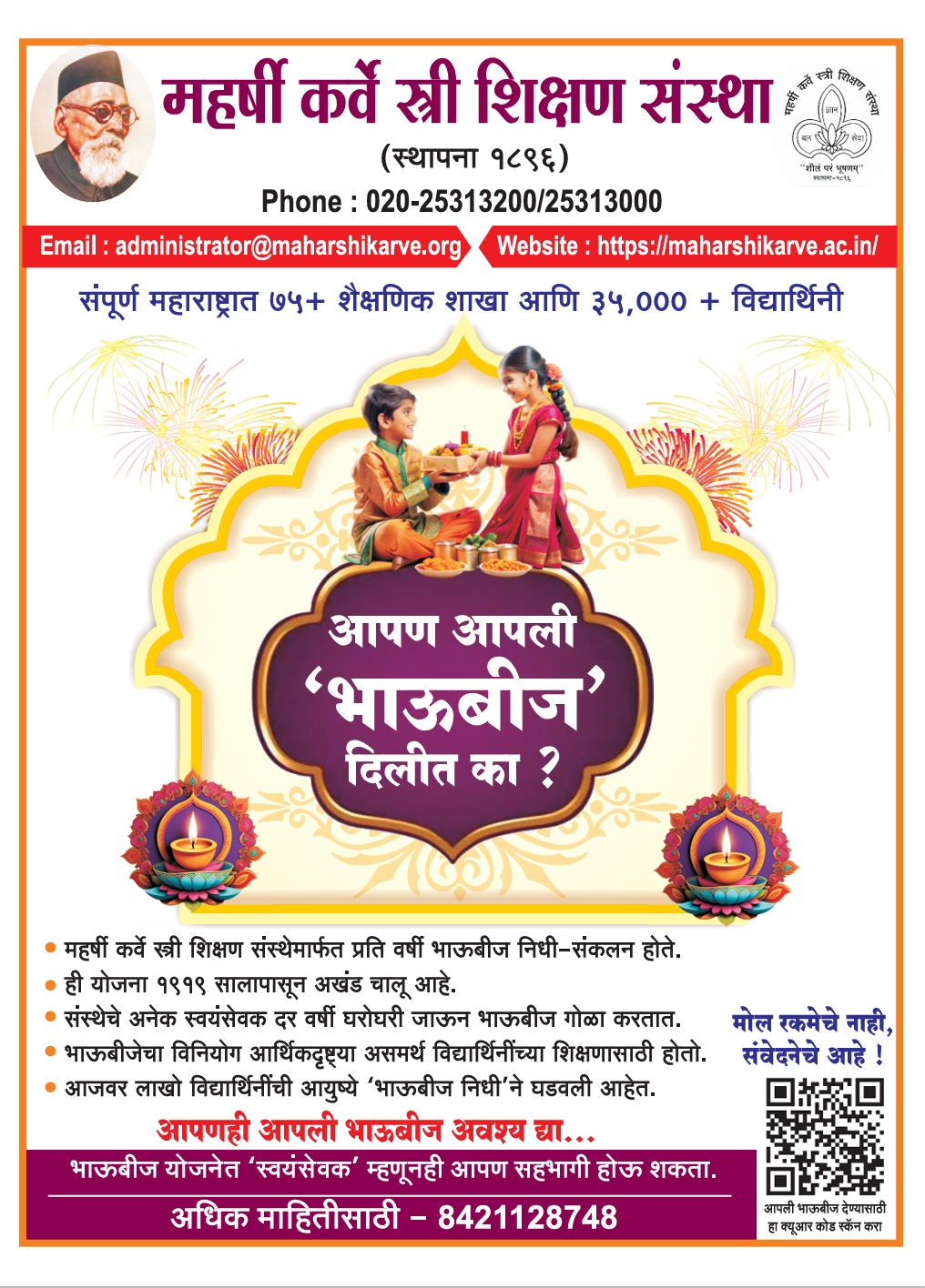 Bharat Ratna Maharshi Dhondo Keshav Karve, popularly known as ‘Anna’ was born in Konkan, (Maharashtra) on 18th April 1858. He spent his childhood at Murud (Ratnagiri) in poverty and hardships. He observed the dire consequences of the custom of child marriage. After the death of his first wife, he remarried a child widow and set an example of widow re-marriage. He incurred the wrath of the society due to this progressive decision, but he remained unmoved.